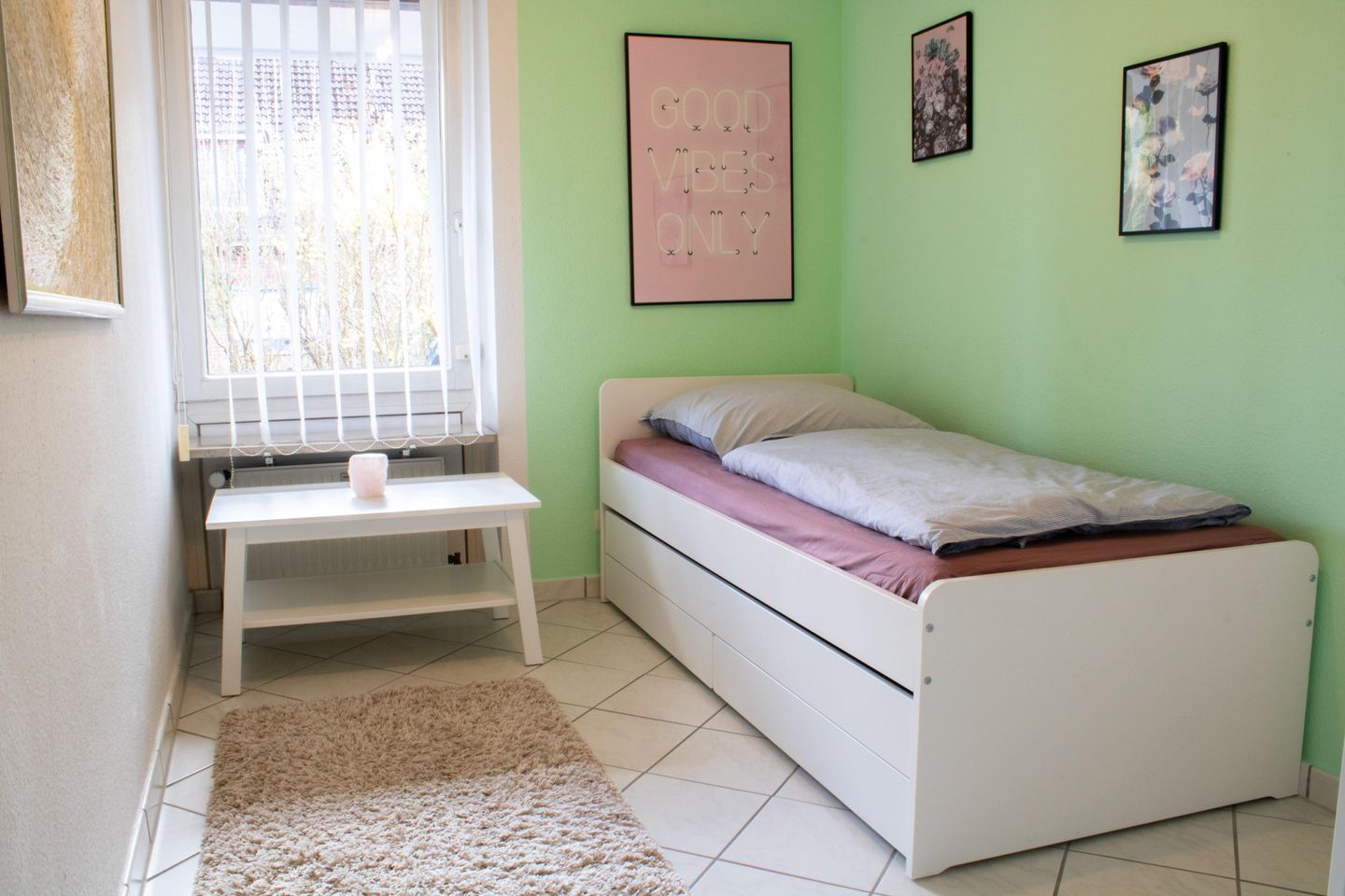 Das eine Schlafzimmer ist mit einem Doppelbett (2 x Einzelmatratzen) ausgestattet und im Kinderzimmer steht ein Standard-Bett